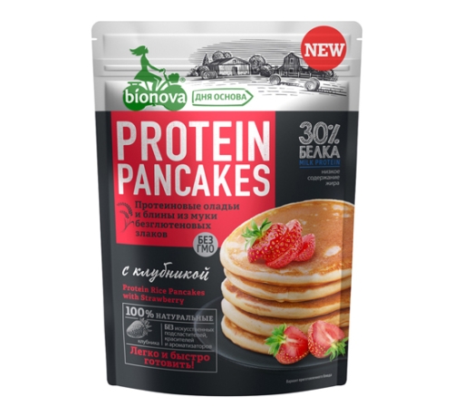 Bionova Смесь для приготовления протеиновых оладий и блинов с клубникой 350 гр
