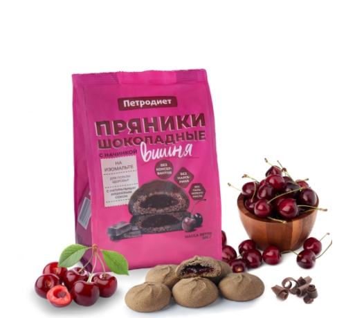 ПетроДиет Пряники шоколадные с вишнёвой начинкой на изомальте 300гр.