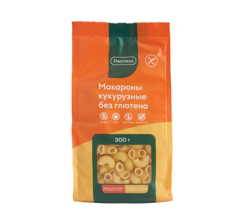 Диетика Макароны Кукурузные Рожок большой 300 гр Без Глютена