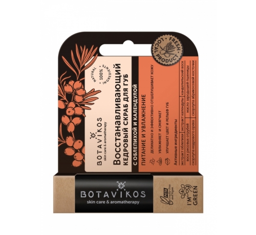 BOTAVIKOS Восстанавливающий кедровый скраб для губ облепиха-календула 4 гр.