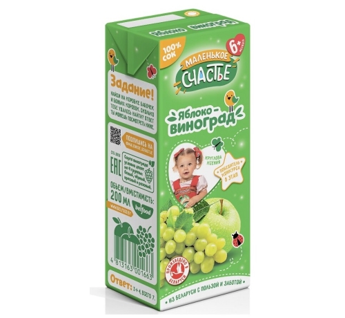 Сок яблочно-виноградный "Маленькое счастье" 0,2л.
